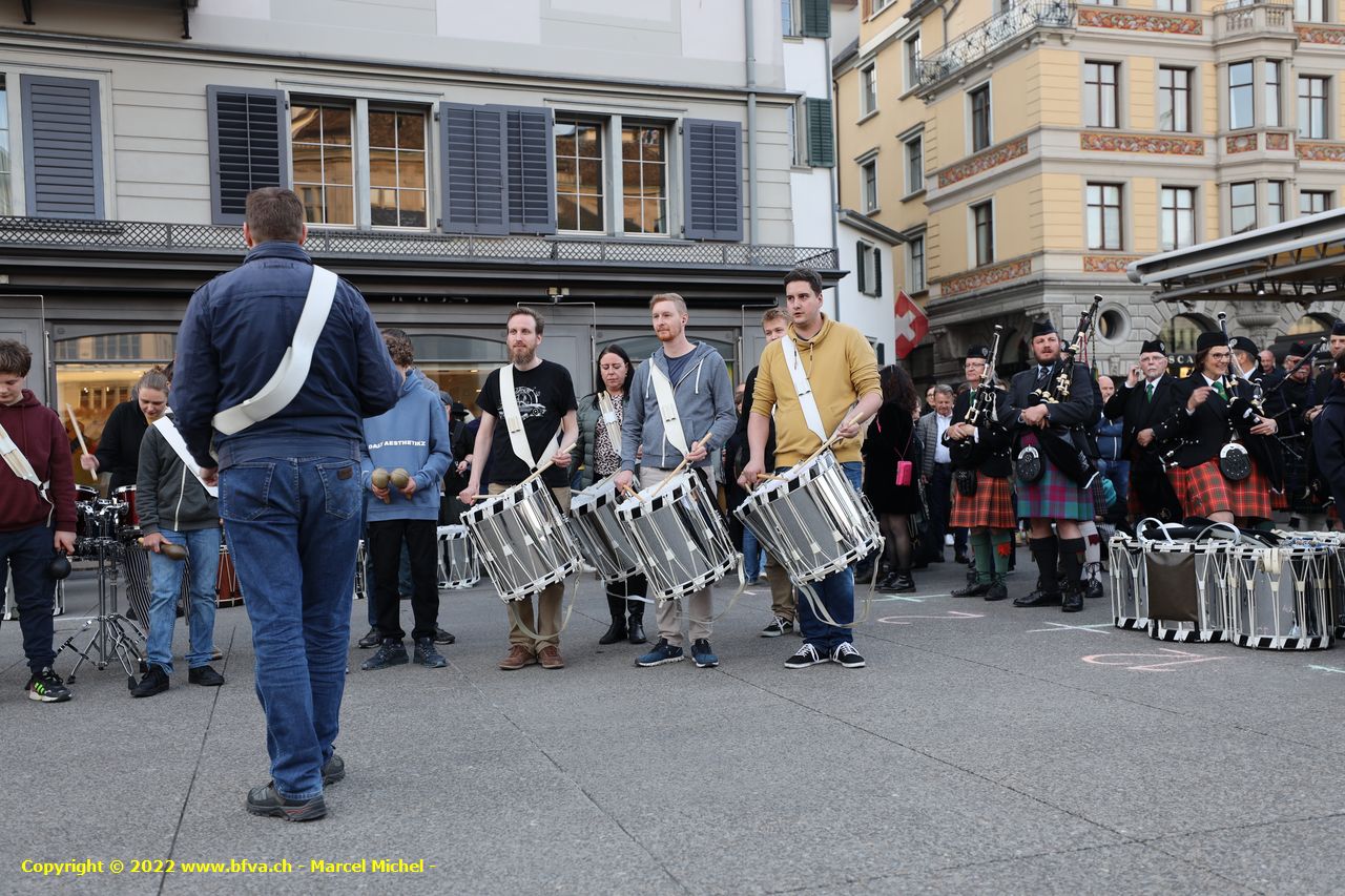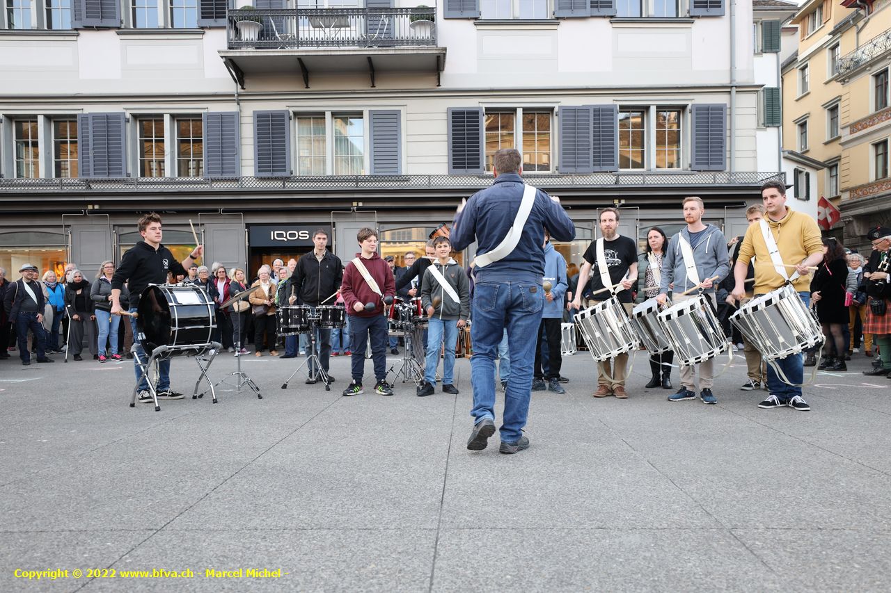 Auch 2021 musste das Trummlebummle leider abgesagt werden. Damit der Zwürbel nicht ganz leer ausgeht, wurde ihm ein kleines Ständeli gespielt.